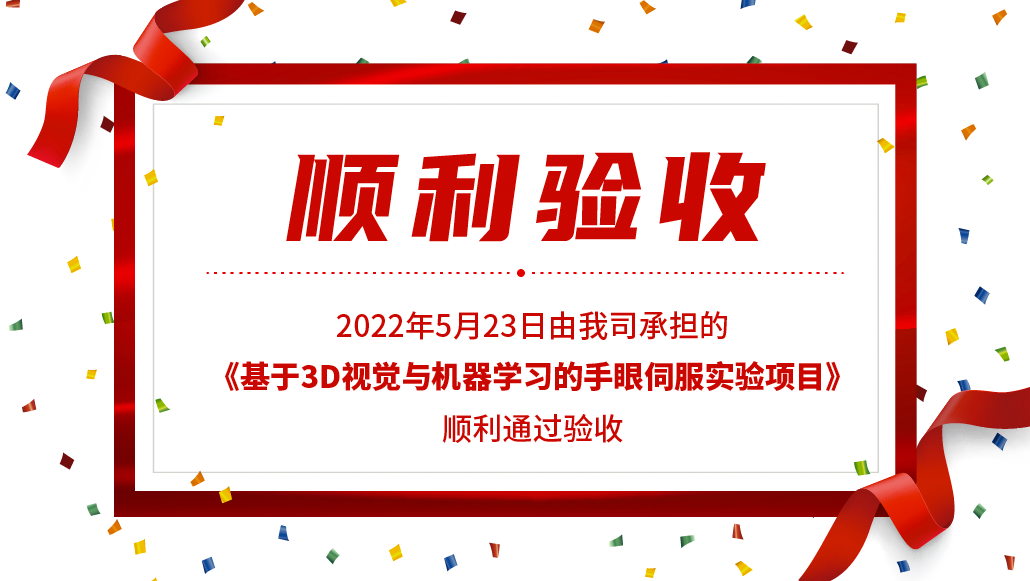 2022年5月23日由我司承擔的《基于3D視覺與機器學習的手眼伺服實驗項目》順利通過驗收。