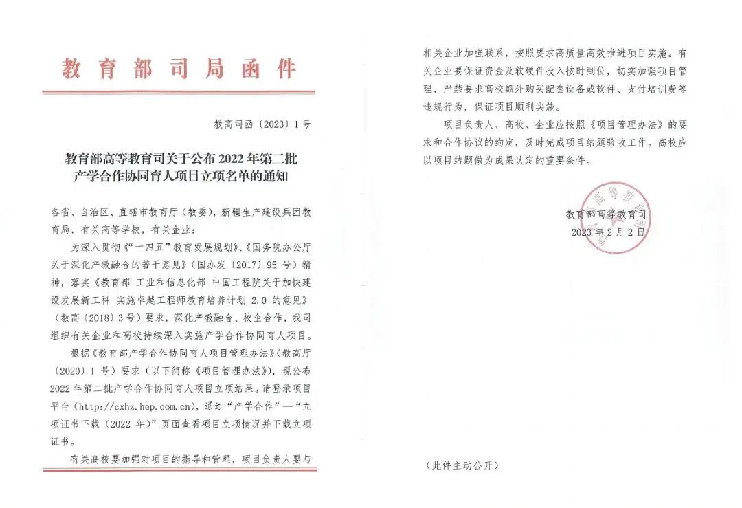 2022年第二批產(chǎn)學(xué)合作協(xié)同育人項(xiàng)目立項(xiàng)結(jié)果發(fā)布,北京軟體機(jī)器人科技股份有限公司申報(bào)的產(chǎn)學(xué)合作協(xié)同育人項(xiàng)目獲100%成功立項(xiàng)。
