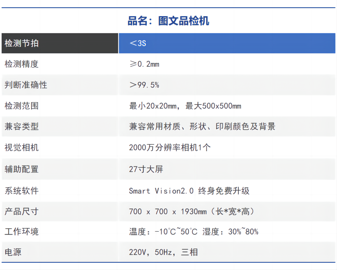 At present, the sampling inspection of incoming materials/printed matter in storage is still mainly based on manual visual identification. With the increasing complexity of product types and the accelerated pace of global product circulation, the market has higher and higher requirements for the printing quality of product packaging.