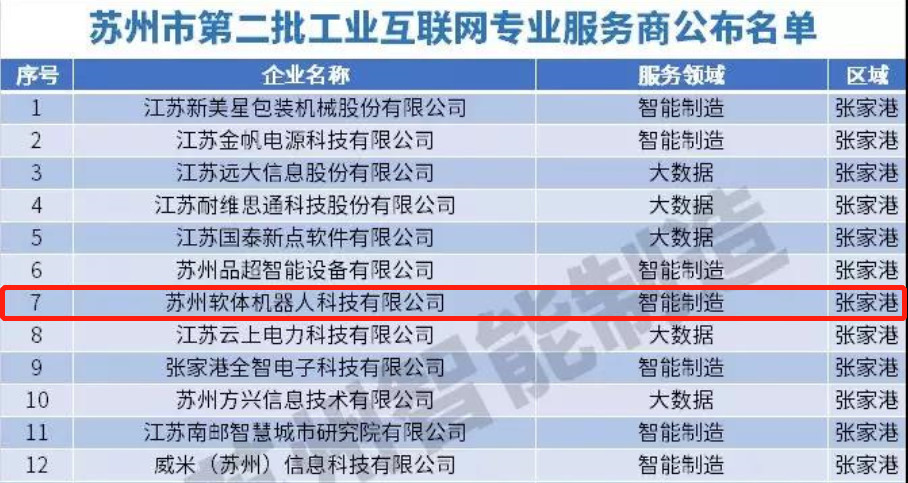 11月25日,蘇州市工信局公布了第二批工業(yè)互聯(lián)網(wǎng)的相關(guān)平臺(tái)名單,蘇州軟體機(jī)器人科技有限公司獲評(píng)“蘇州市工業(yè)互聯(lián)網(wǎng)專業(yè)服務(wù)商”稱號(hào)。