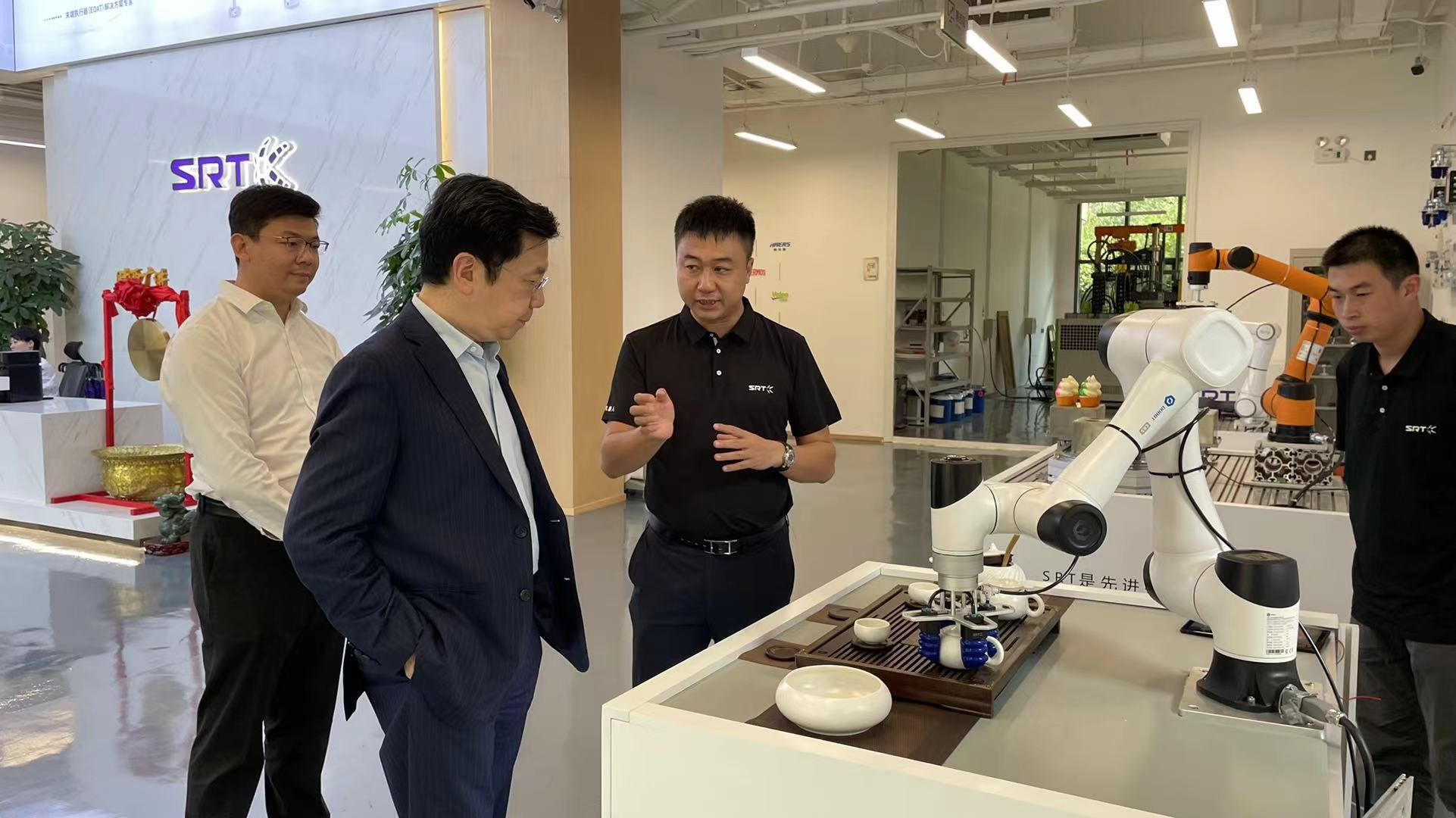 △ 李開復(fù)博士及其團(tuán)隊(duì)參觀SRT茶道演示平臺(tái)