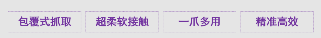 SRT柔性夾爪是模仿人手抓取設(shè)計的一種創(chuàng)新型柔性夾具。其作業(yè)頻率達300CPM,重復(fù)定位精度0.08mm,最大負載10kg,抓持壽命達300萬次以上。且抓持動作輕柔,適合抓取異形、易損物品。依托其強大的自適應(yīng)性,完全規(guī)避掉傳統(tǒng)鋼爪的短板,實現(xiàn)精準(zhǔn)、無損抓取。同時,助力客戶實現(xiàn)貨物分揀與上架工序的自動化運行,從而減輕工人勞動強度。