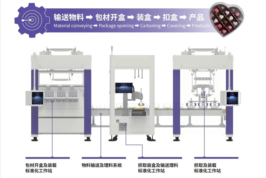 2023年,為突破包裝行業(yè)產(chǎn)品種類多,相關(guān)產(chǎn)品特性、包裝材料、客戶要求差異大等重重桎梏,SRT充分利用技術(shù)優(yōu)勢(shì)打通工藝流程“斷點(diǎn)”,成功推出SRT移載機(jī)器人應(yīng)用平臺(tái),將原本分散的包裝線化零為整,助力包裝行業(yè)客戶實(shí)現(xiàn)自動(dòng)化的產(chǎn)線升級(jí)。