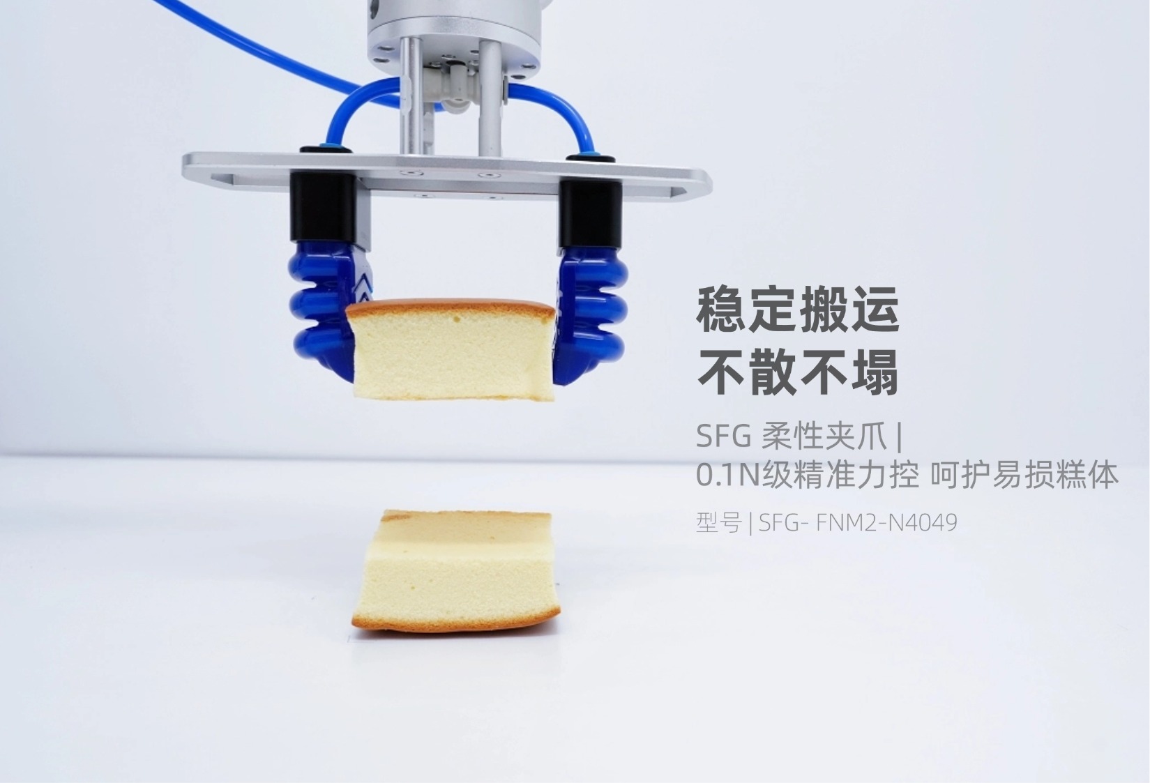 l 夾爪本體采用FDA認(rèn)證食品級(jí)硅膠材質(zhì),具備適宜的柔軟度,可模擬人類手指的包覆式抓取,分散與蛋糕的接觸面積,避免局部壓力集中導(dǎo)致的蛋糕變形。