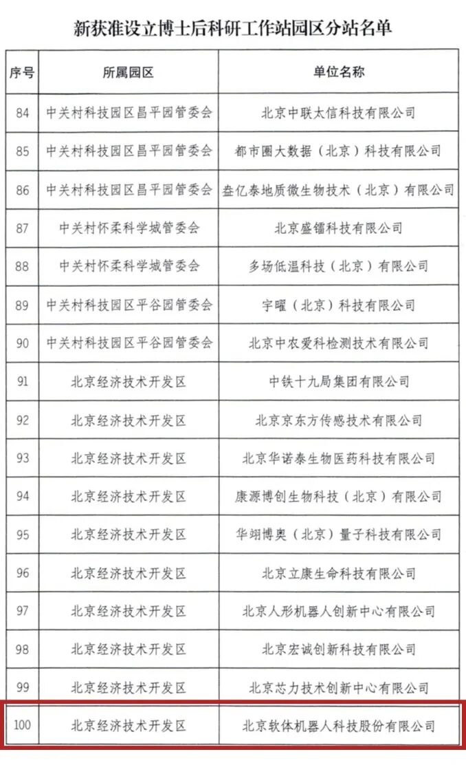 作為北京市博士后工作體系建設(shè)的重要一環(huán),博士后科研工作站園區(qū)分站旨在推動企業(yè)與高校、科研院所的緊密合作,加快科技成果轉(zhuǎn)化,培養(yǎng)適應(yīng)產(chǎn)業(yè)發(fā)展需要的創(chuàng)新型青年人才。公司此次成功獲批,充分體現(xiàn)了政府部門對軟體機器人在科技創(chuàng)新、人才集聚與產(chǎn)業(yè)貢獻方面的認可與支持。